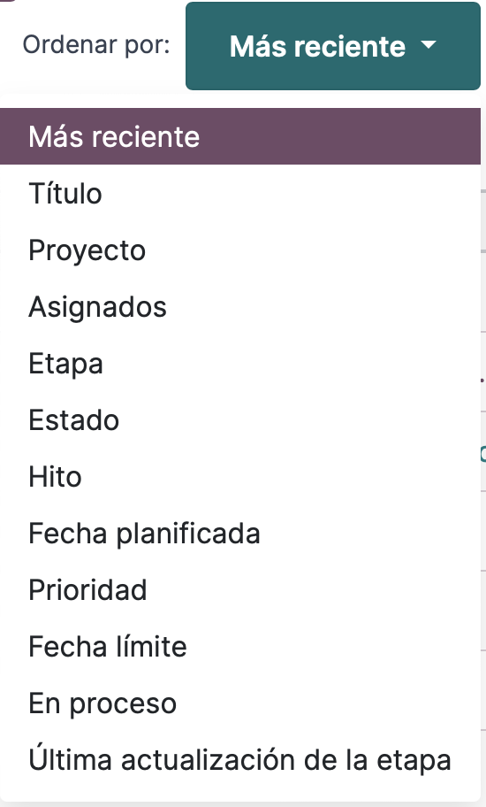 Permite ordenar el listado de tickets por los siguientes criterios: